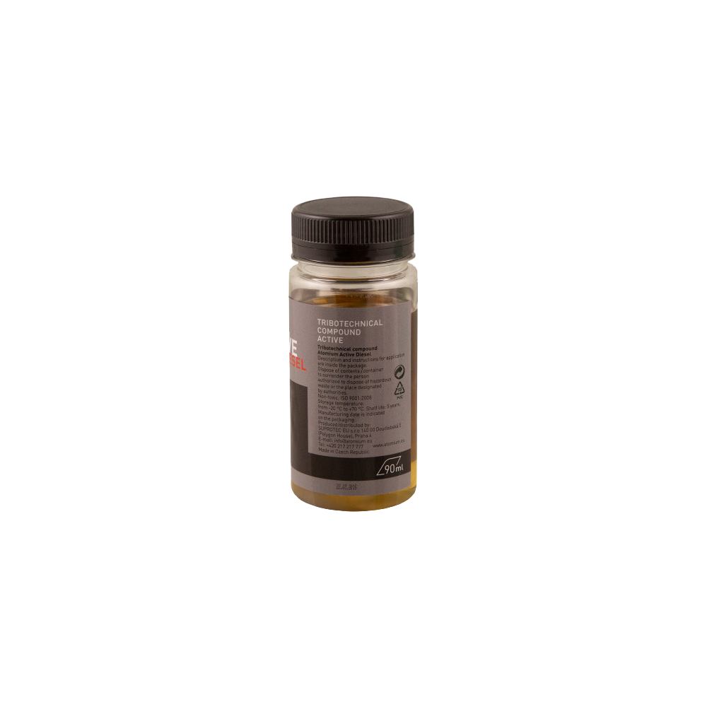 Compuesto tribotécnico Atomium Active Diesel especialmente diseñado para ser más efectivo para las temperaturas y velocidades de los nuevos motores Diesel con un volumen del sistema de aceite de hasta 5 litros.