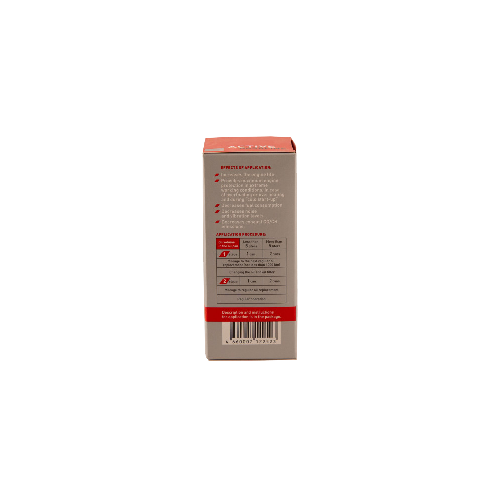 Aditivo tribotécnico Atomium Active Gasoline especialmente diseñado para ser más efectivo para temperaturas y velocidades de motores de gasolina nuevos con un volumen de sistema de aceite de hasta 5 litros.