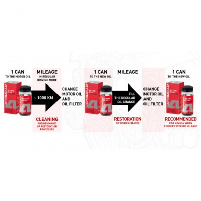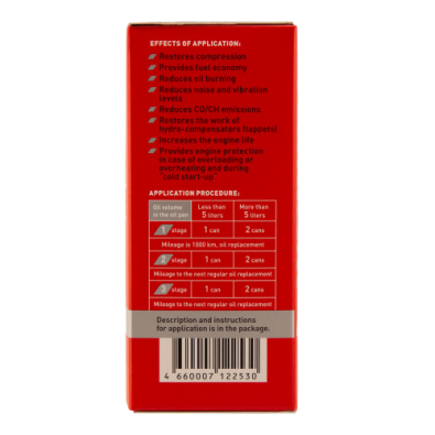 Al restaurar las superficies de fricción desgastadas, el aditivo aumenta la compresión, la potencia, la aceleración, reduce el consumo de combustible.