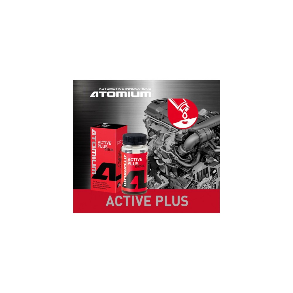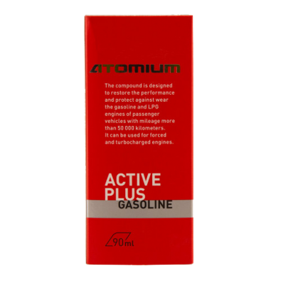 Compuesto tribotécnico Atomium Active Plus Gasolina especialmente diseñado para ser más efectivo para temperaturas y velocidades de motores de gasolina envejecidos con un kilometraje de más de 50.000 kilómetros con un volumen del sistema de aceite de hasta 5 litros.