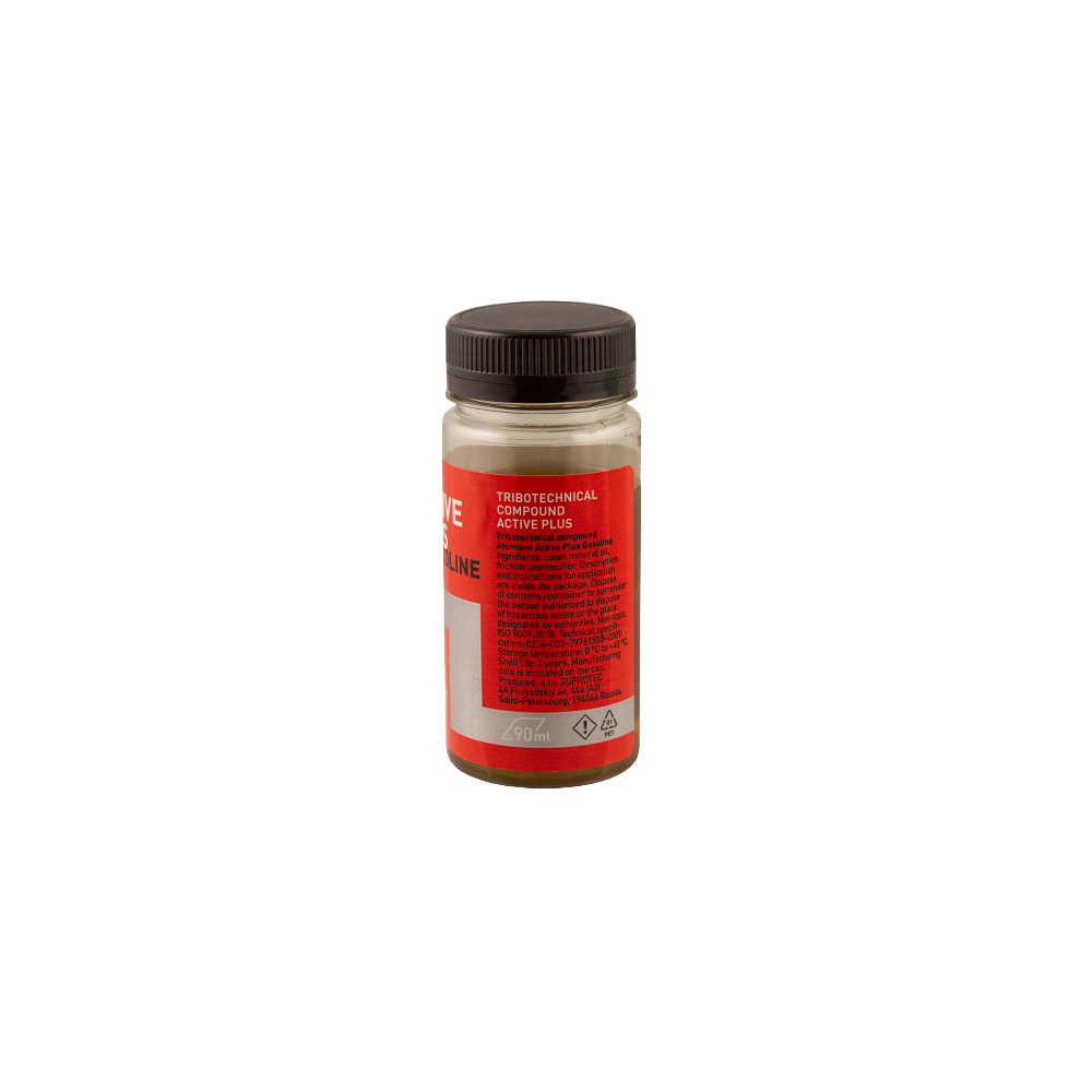 El aditivo tribotécnico Atomium Active Plus Gasoline contiene un mineral natural activo con una capacidad única para cambiar los procesos que ocurren en microáreas de contactos locales de dos superficies de desgaste.