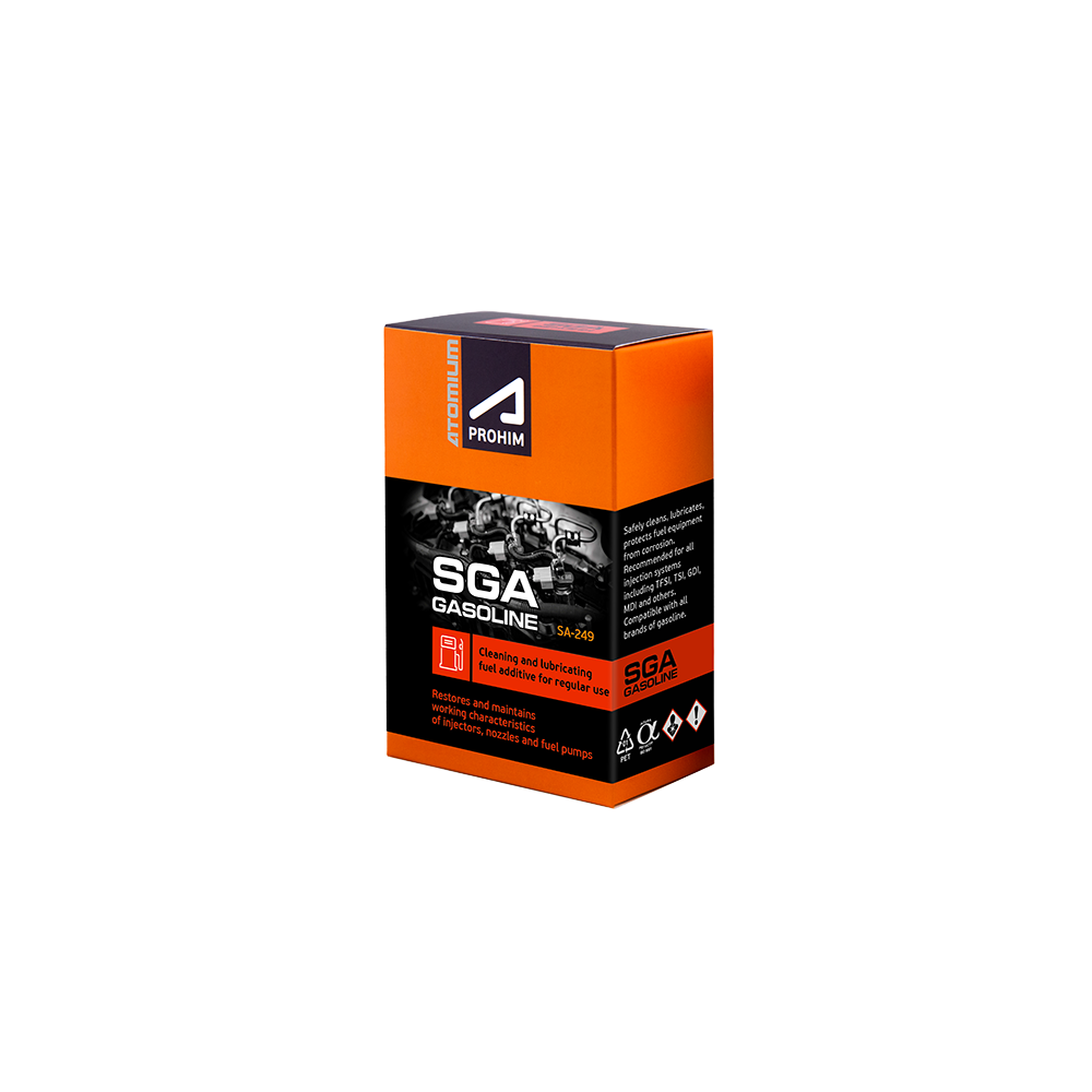 El aditivo de combustible ATOMIUM APROHIM SGA limpia suavemente el equipo de combustible, lo lubrica, lo protege de la corrosión y evita la formación de depósitos. Esto restaura el rendimiento de las bombas de combustible, los inyectores o las boquillas, los protege del desgaste y prolonga su vida útil. La recuperación completa del equipo de inyección de combustible mejora la inyección, reduce el consumo de combustible y mejora la dinámica. La contaminación por combustible de baja calidad es la principal razón para reducir las características y fallas de los equipos de combustible. El aditivo de combustible SGA otorga propiedades de limpieza y lubricación al combustible de gasolina, bloquea la corrosión de los elementos del sistema en caso de entrada de agua o condensado. Limpiar las bombas y reducir el desgaste de los émbolos normaliza la presión del combustible en el sistema. Limpieza de válvulas, canales y toberas de inyectores: prolonga su vida útil. En conjunto, esto asegura una atomización de combustible de alta calidad y una combustión más completa, lo que conduce a los siguientes efectos: Reducción del consumo de combustible en un 5% -15% dependiendo del estado del automóvil. extendió la vida útil de los equipos de combustible. vibraciones reducidas debido a la combustión uniforme del combustible en los cilindros. carga reducida en la turbina, catalizadores y postquemadores de combustible, lo que prolonga su vida útil. contaminantes reducidos en el aceite del motor que conserva sus propiedades de trabajo y finalmente reduce el desgaste del motor. El aditivo para combustible SGA está diseñado para un uso continuo (regular), por lo que tiene una fórmula "blanda" equilibrada. Elimina gradualmente la suciedad y los depósitos y previene la formación de nuevos. El aditivo no contiene "promotores de combustión" u otras sustancias que cambien los modos de funcionamiento del motor. El aditivo se vende en botellas de un solo uso; en la mayoría de los casos, una botella por cada llenado de un tanque lleno.
